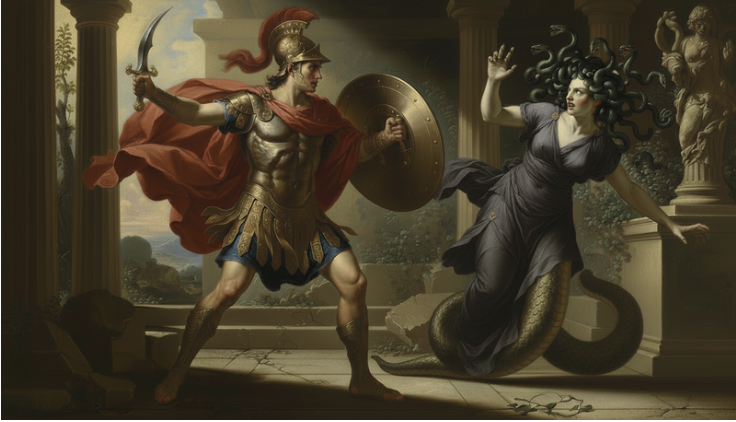 But Perseus was the son of Zeus, and because of this, he received guidance from the Gods to help kill Medusa. First, Athena (goddess of warcraft and wisdom) told Perseus to seek the Grey Sisters, who shared a single tooth and a single eye among all of them. The sisters knew the location of the Gorgons, Medusa being one of them. Perseus stole the Gray Sisters’ eye to make them tell him where Medusa was. The Gray Sisters confessed that Medusa and the other Gorgons were on a rocky island named Sarpedon. To travel all that way, Perseus received winged sandals from Hermes (the Messenger God) a kibisis to carry Medusa’s bag from the Stygian nymphs, and a helmet of invisibility from Hades (God of the Dead). But Medusa had a demonic gaze—if you looked into her eyes, you were turned to stone forever. To counter her gaze, Athena gave Perseus a reflective shield.